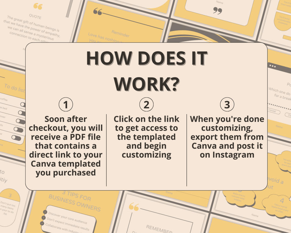 • You must have a Canva account to edit the templates. You do not have to buy any subscription since the templates do not contain any premium elements (Canva is free aswell).