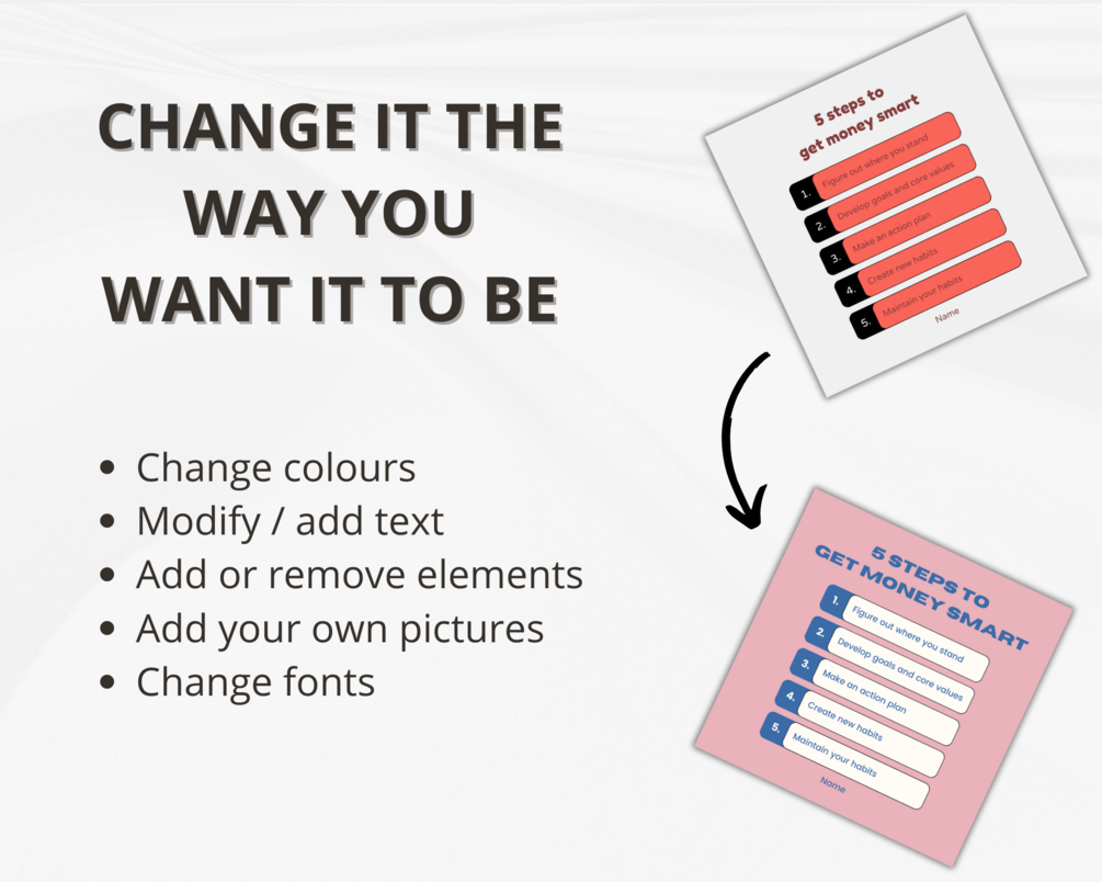 - You must have a Canva account to edit the templates. You do not have to buy any subscription since the templates do not contain any premium elements (Canva is free aswell).