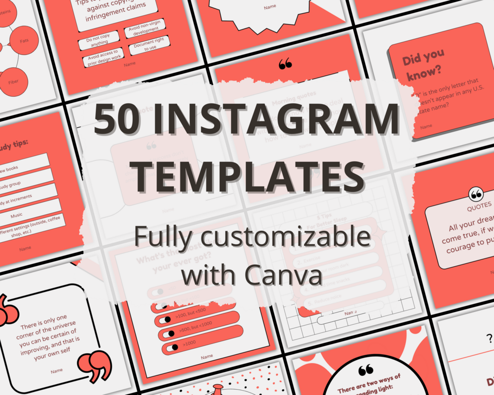This Instagram template bundle is crafted using Canva, empowering you to fashion sleek and minimalist Instagram posts for your business or share your cherished quotes. These templates are fully customizable within Canva, tailored for you to infuse them with your distinct style!